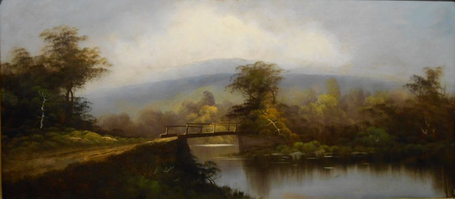 Humidity and shrinking had caused this c.1900 naive Hudson River School painting on canvas to rip itself apart. It was lined onto a layer of polyester canvas and then onto a rigid board. After cleaning, repairing the tears and in-painting the paint losses, a final coat of non-yellowing varnish brought out all of the beautiful details.